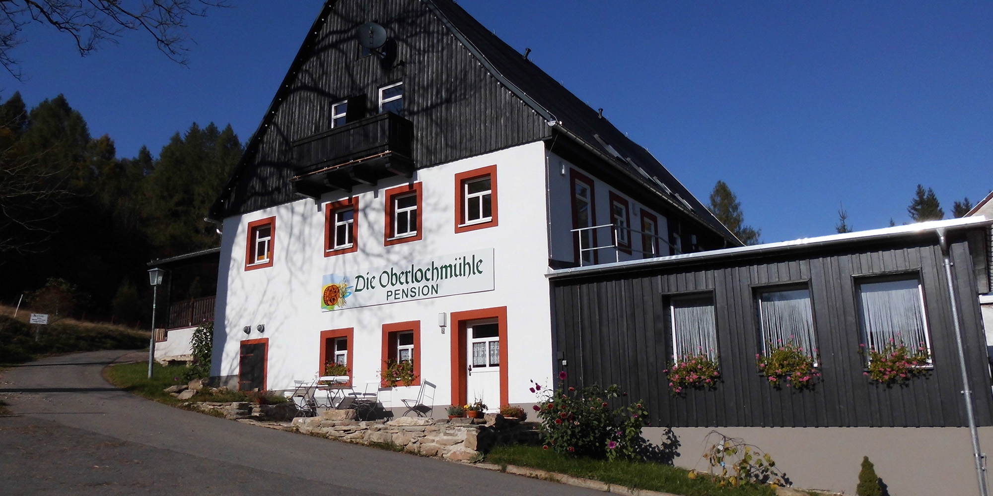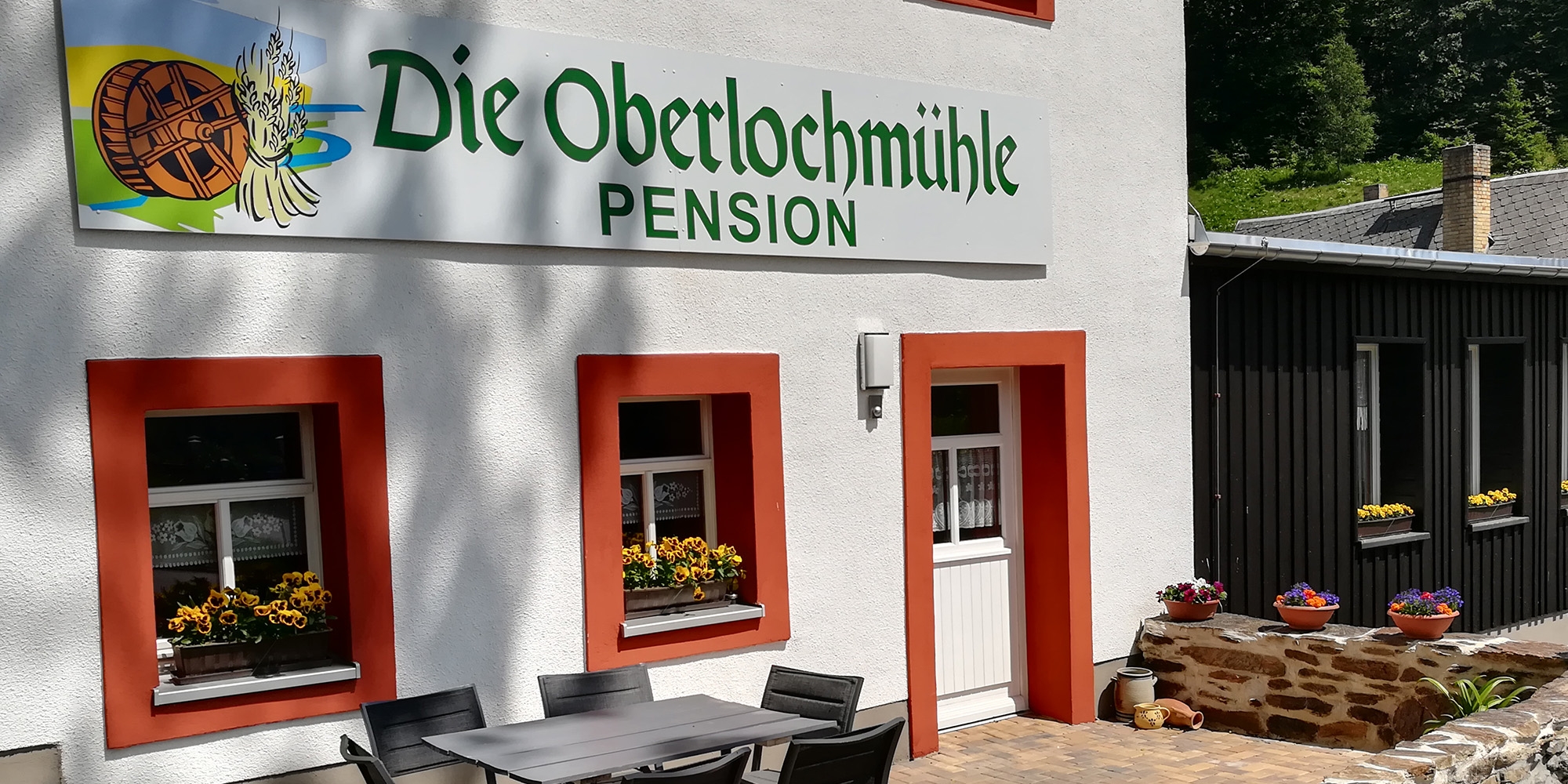 genießen Sie familiäre Gastlichkeit im ältesten und namensgebenden Gebäude von Oberlochmühle. Die im 17. Jahrhundert erbaute Mahlmühle wurde von 2015 bis 2017 umfangreich zu einer Pension im 3-Sterne-Superior-Standard ausgebaut. Wohltuende Ruhe, die idyllische Lage umgeben von viel Natur, vor allem viel Wald und Lagerfeuer-Romantik am Mühlenteich lassen den Alltagsstress schnell vergessen.
